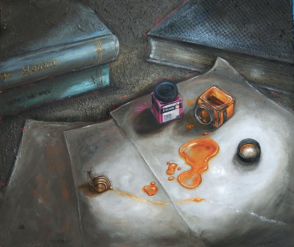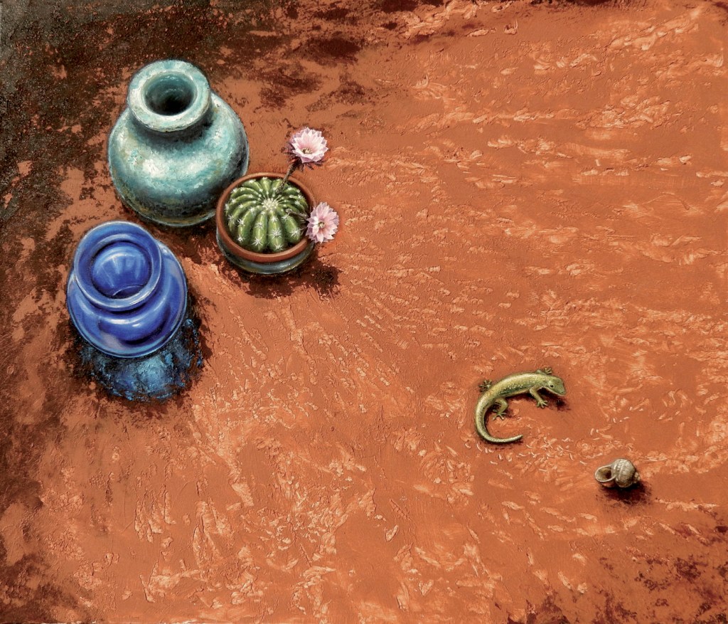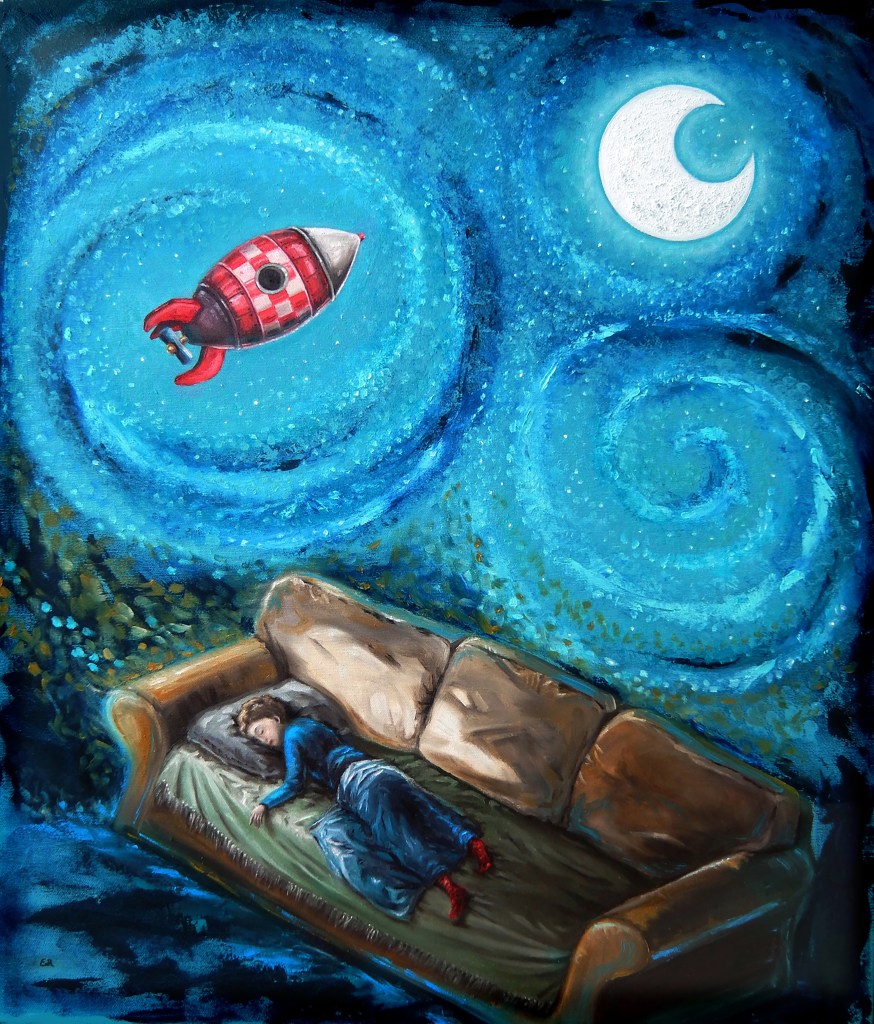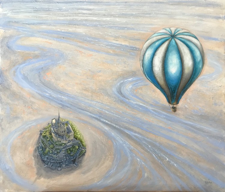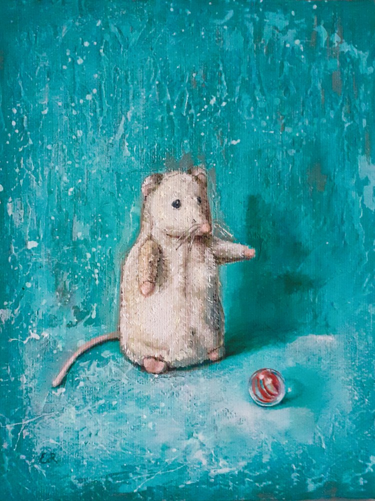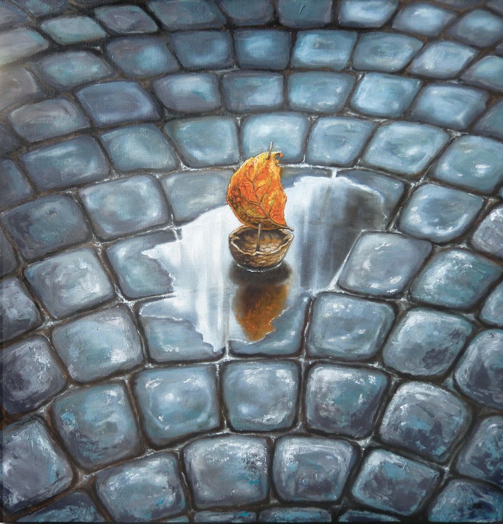 Alcuni dei miei quadri nascono dal desiderio di visualizzare una sensazione, un pensiero che mi gira nella testa per giorni finché non trovo il modo di esprimerlo visivamente, e nascono allora delle piccole storie racchiuse in un’ unica immagine.