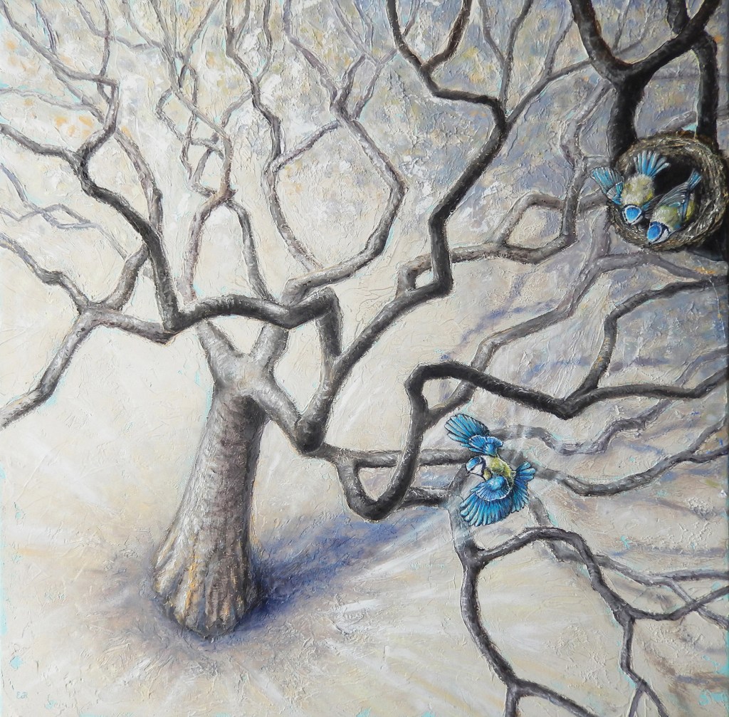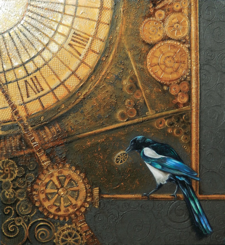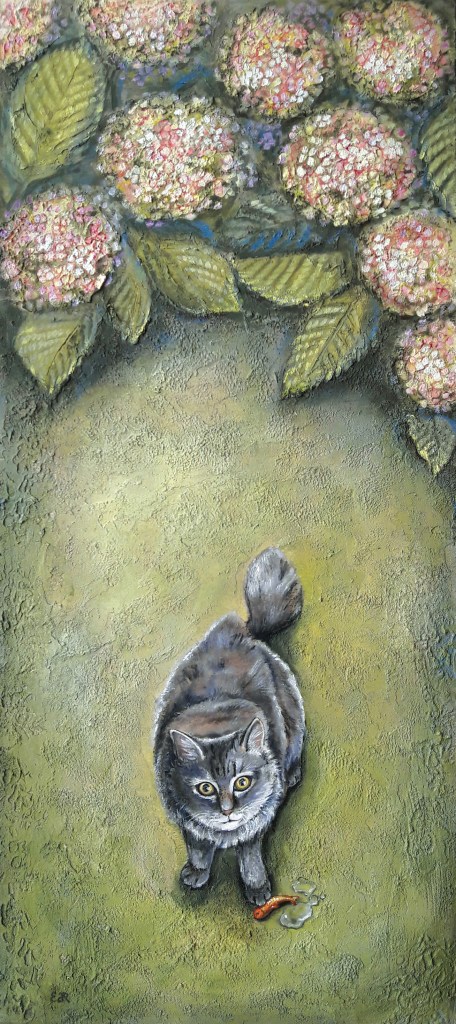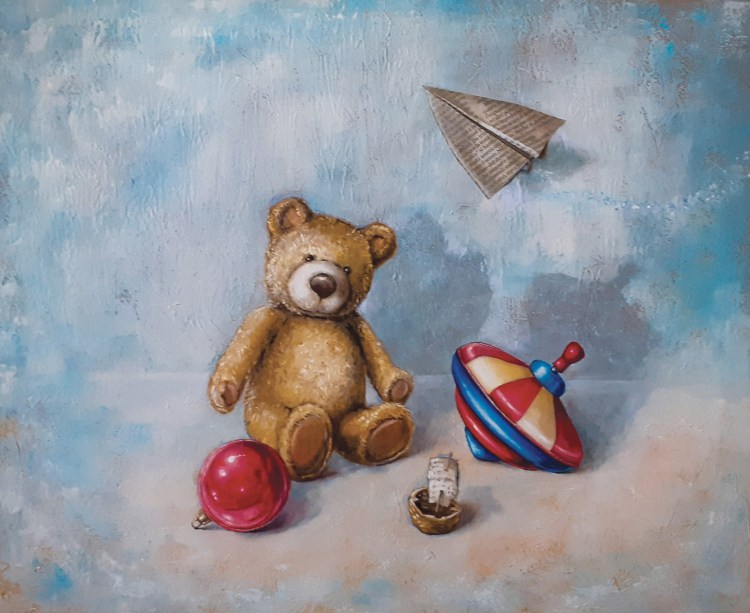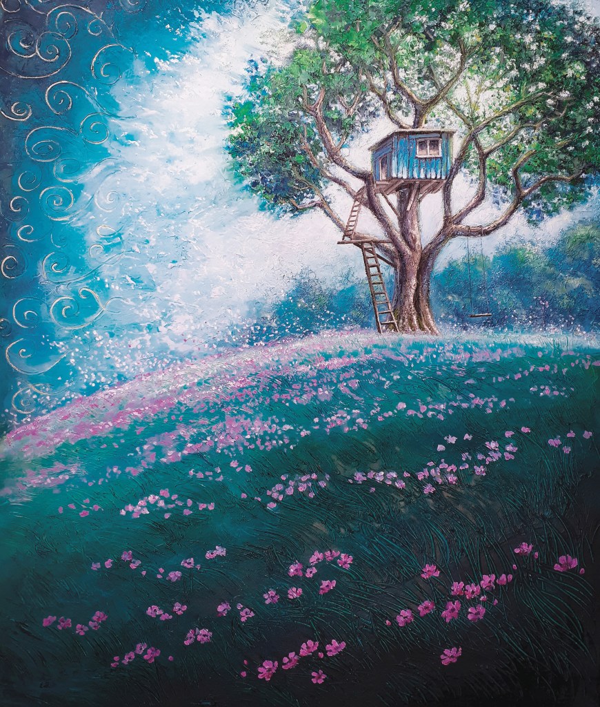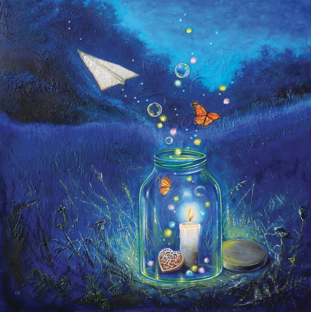 Alcuni dei miei quadri nascono dal desiderio di visualizzare una sensazione, un pensiero che mi gira nella testa per giorni finché non trovo il modo di esprimerlo visivamente, e nascono allora delle piccole storie racchiuse in un’ unica immagine.