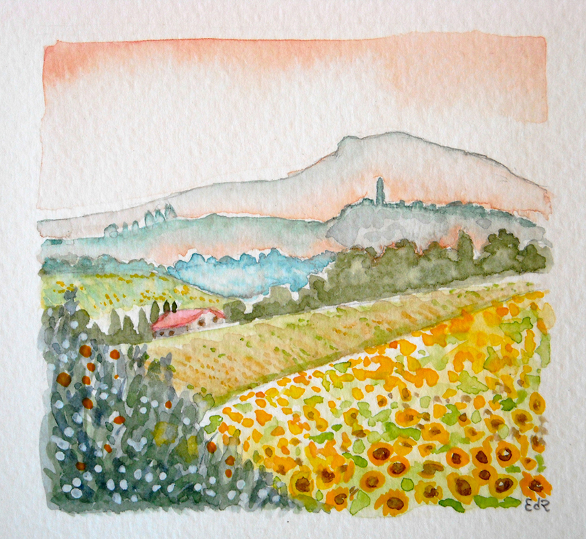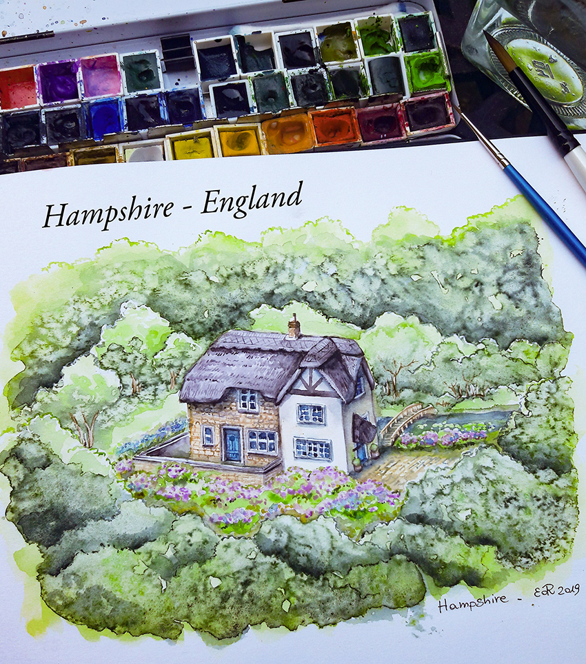 Anche quando sono lontana da casa non rinuncio a dipingere e, visto che gli acquerelli si possono portare comodamente in valigia a differenza dei colori ad olio e degli acrilici, durante i miei viaggi mi dedico a questa tecnica che amo molto.